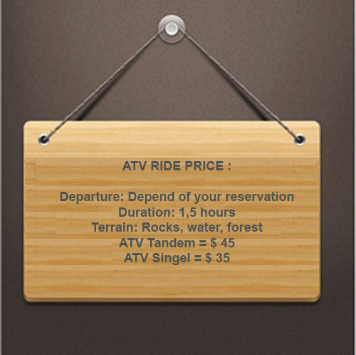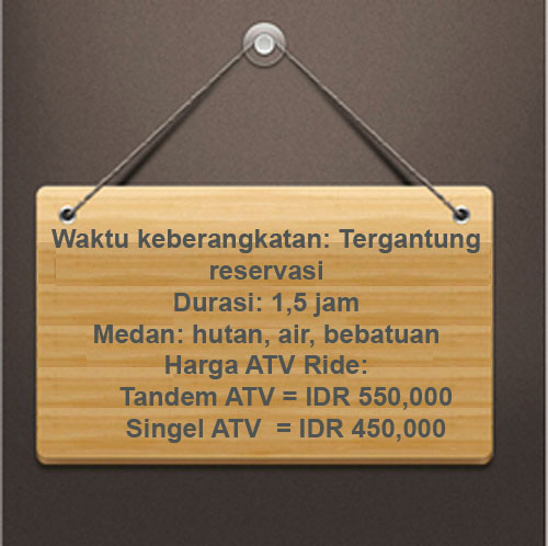 Apakah anda suka berpetualangan? Medan yang menantang untuk melakukan petualangan adalah bukit, sungai, hutan dan pegunungan. Untuk menghadapi medan tersebut maka kendaraan yang cocok untuk berpetualangan adalah ATV. Baik anda suka berkendara sendirian di ATV atau berkendara bersama teman atau berkendara bersama anak anda atau pasangan tercinta anda di ATV, tidak ada yang menandingi trail ATV dalam petualangan off-road di bukit berbatu Uluwatu. Beruntung bagi anda karena kami telah memilih lokasi yang tidak biasa di Bali yaitu di bukit bercadas Uluwatu, kuta selatan dekat dengan objek wisata terkenal yaitu Pura Besar Uluwatu. Petualangan anda akan berlangsung selama kurang lebih satu setengah jam dengan banyak sensasi medan yang akan dilalui antara lain hutan, air serta bebatuan. Staf kami akan memanjakan anda dengan minuman kelapa muda pada tempat peristirahatan selama tour.